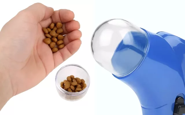 Herkkuheittimellä ruokintahetkestä tulee jännittävä. Kissani osallistuu joskus myös! Läpinäkyvä kuppi auttaa tietämään, milloin täyttää uudelleen.