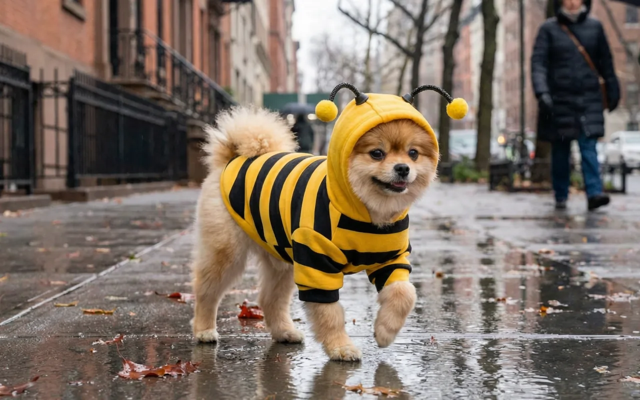 Hankin mehiläishupparin syyskävelyille. Koirani ei enää tärise, ja naapuruston lapset osoittelevat ja hihittävät aina, kun näkevät hänen pörräävän kadulla.