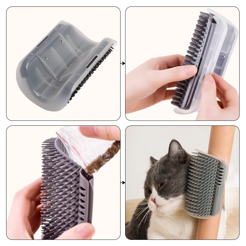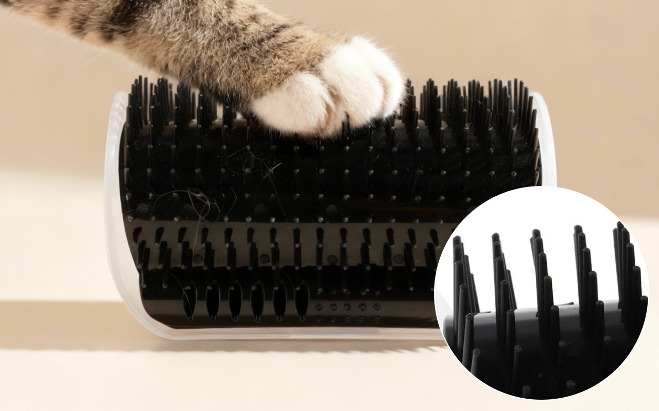 Kissan karvanpoistoväline – kulmaharja hierovilla harjaksilla