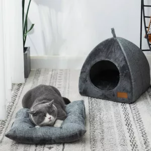Kolmiomainen muoto luo yksityisyyttä ja vähentää stressiä ja ahdistusta nopeasti. Kissat tuntevat olonsa suojatuksi sisällä ja nauttivat rauhallisista hetkistä tarpeen mukaan.