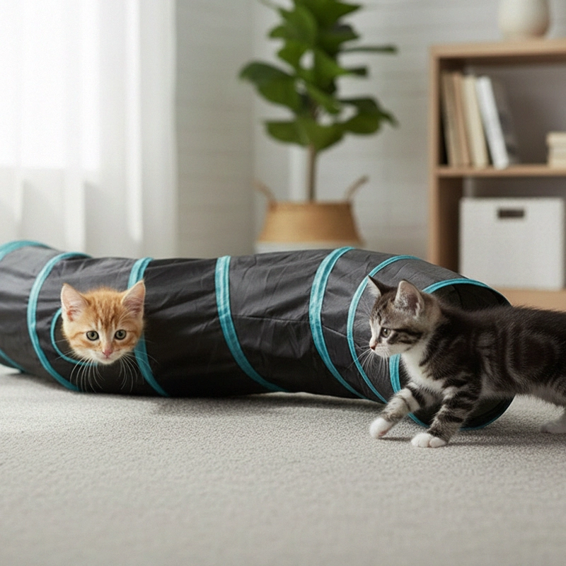 Ei enää loputonta maukumista huomiosta – kissani viihdyttää itseään pitkään! Helppo puhdistaa ja tunneli taittuu nopeasti.