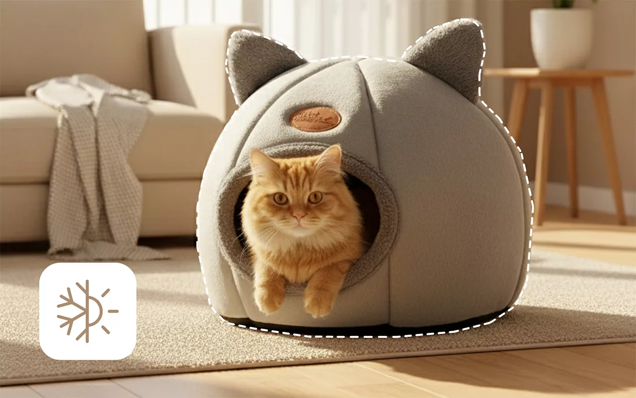 Sisätyyny pysyy mukavana kylmällä ja kuumalla säällä. Kissasi voi rentoutua helposti tuntematta kylmää tai ylikuumenemista.