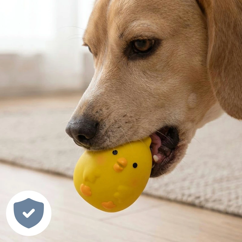 Koiranpentuni menee hulluksi tämän kanan kanssa! Hän leikkii sillä joka aamu ja vingahdus saa aina hänen häntänsä heilumaan. Hampaatkin näyttävät puhtaammilta!