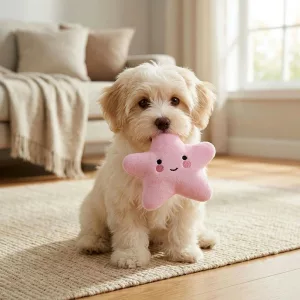 Koirani rakastaa uutta tähtipehmoaan! Hän raahaa sitä kaikkialle ja nukkuu sen kanssa. Vinku pitää hänet kiireisenä ja iloisena joka aamu.