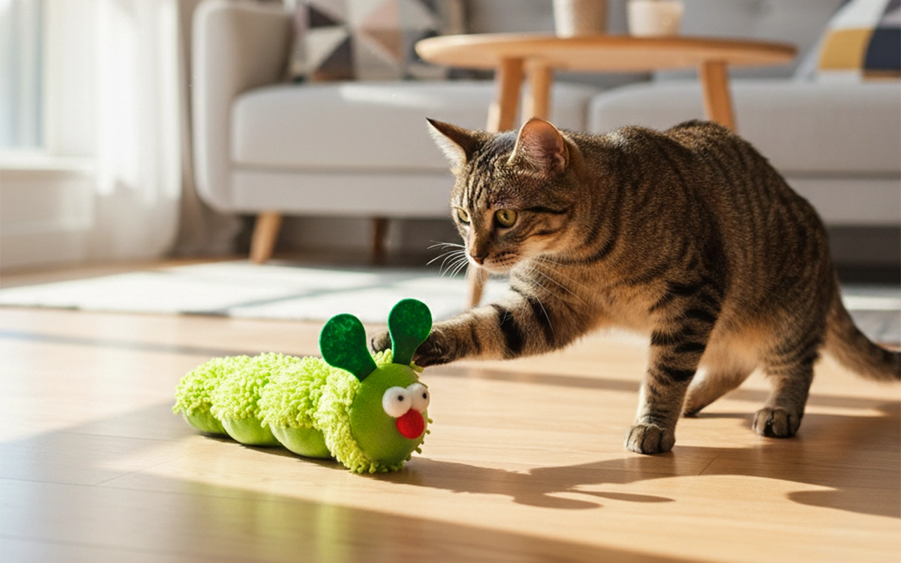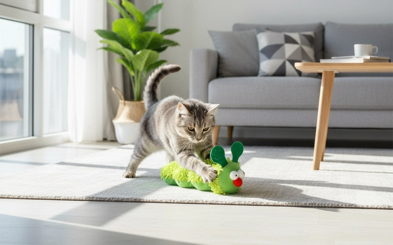 Kyllästyminen katoaa, kun kissasi löytää Primdog-toukan. Tämä iloinen leikkikaveri tuo iloa jokaiseen sisähetkeen. Pehmeä materiaali tuntuu miellyttävältä tassujen ja kynsien alla.