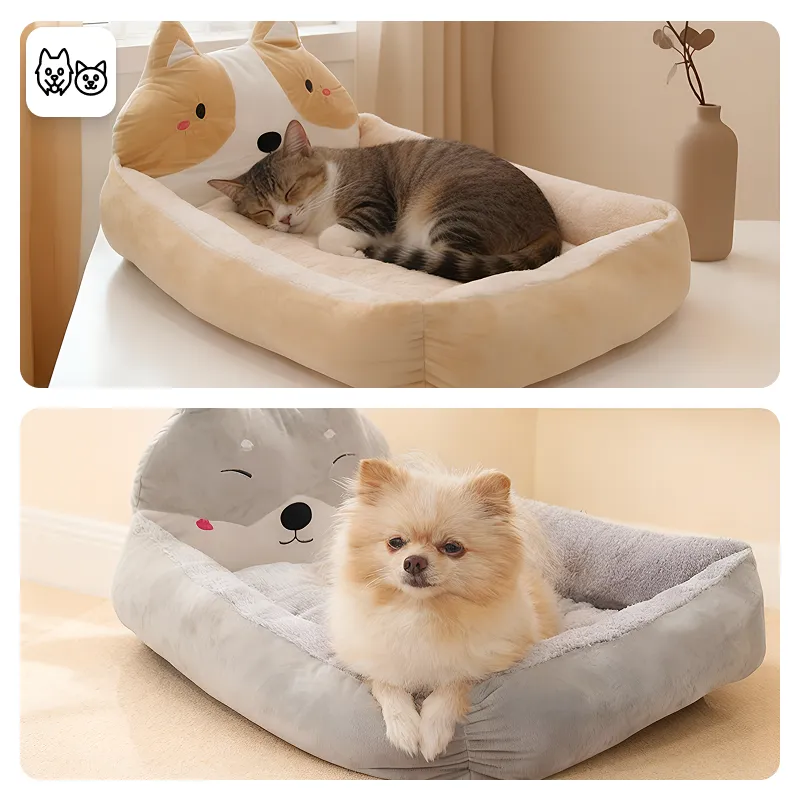Hellästi korotetut reunat luovat turvallisen lepopaikan. Paksu pehmuste tukee niveliä ja helpottaa nopeasti väsyneitä lihaksia. Pehmeät materiaalit pitävät kehon lämpimänä ja mukavana kylminä kuukausina. Suloiset eläinkuosit tuovat iloisen lisän mihin tahansa huoneeseen.