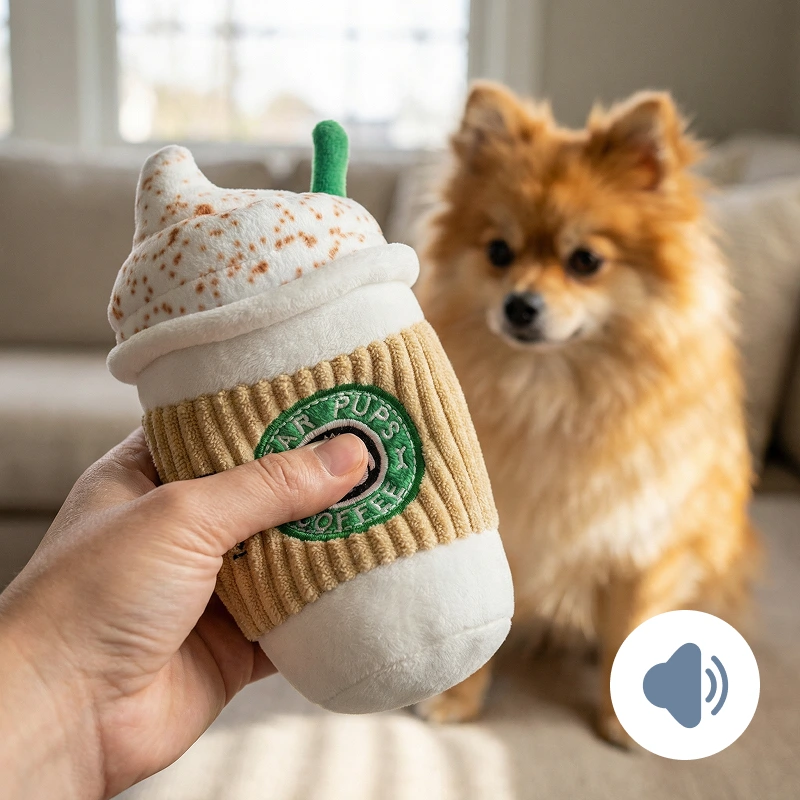 Söpö pehmeä fleece-kahvikuppi vinkuva koirien purulelu