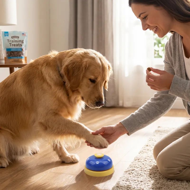 Muuta äänekäs anelu rauhalliseksi ja yksinkertaiseksi merkiksi. Primdog-kellolelu tuottaa kirkkaan äänen, jonka kaikki kuulevat. Käytä sitä ruokailuun, ulkoilutarpeisiin tai leikkihetkiin.