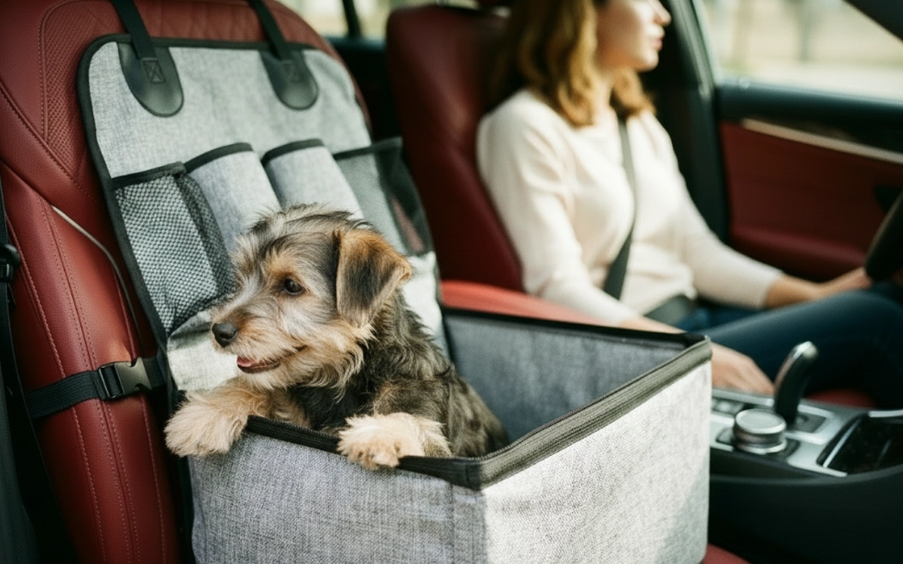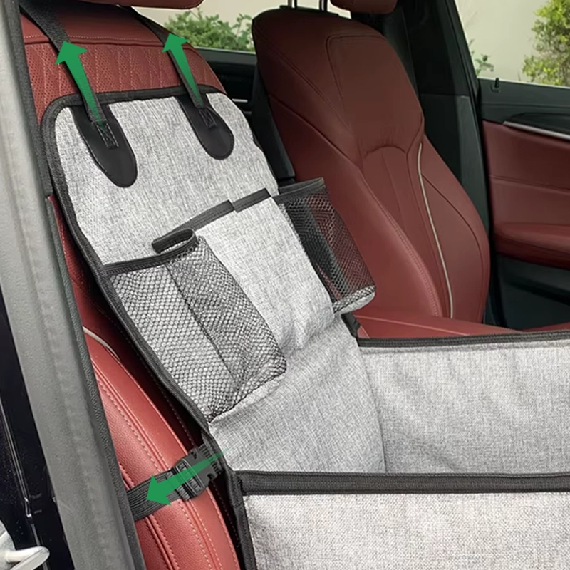 Koira-auton istuimen suojalaukku taskuilla