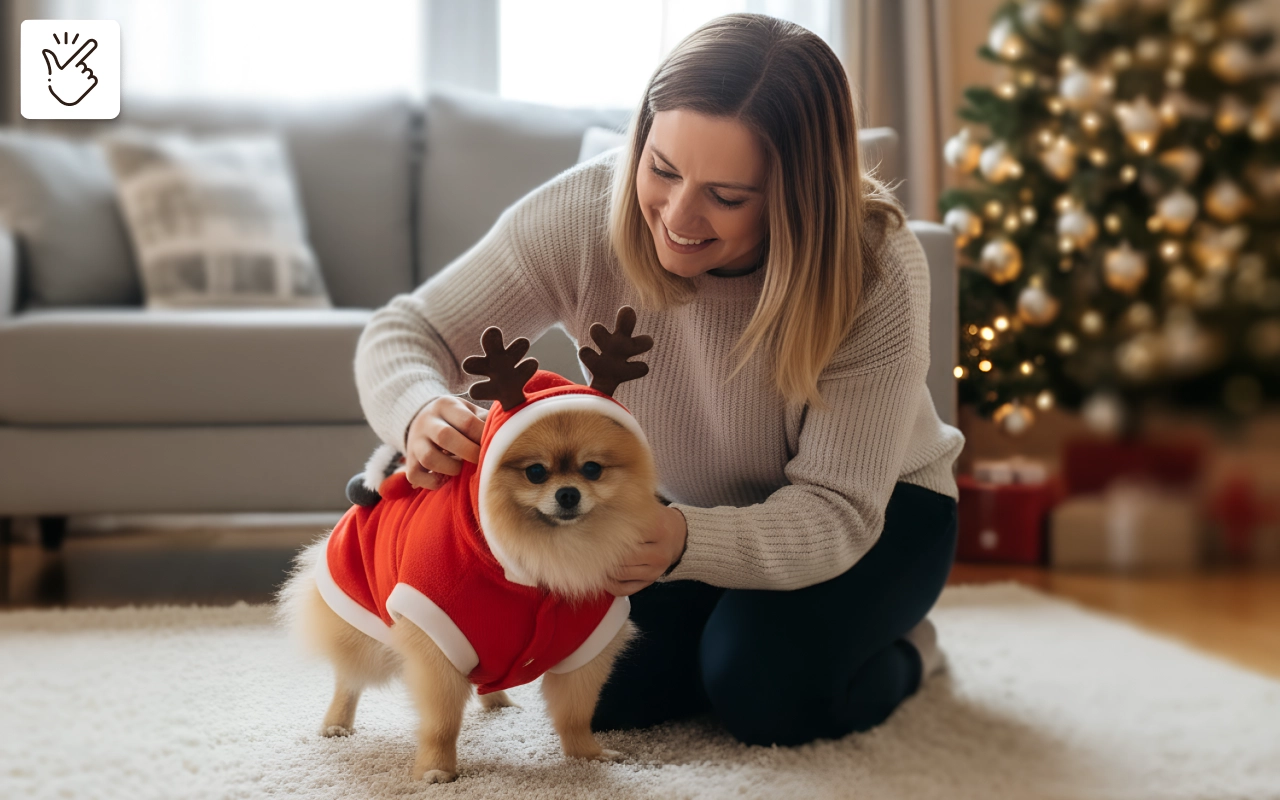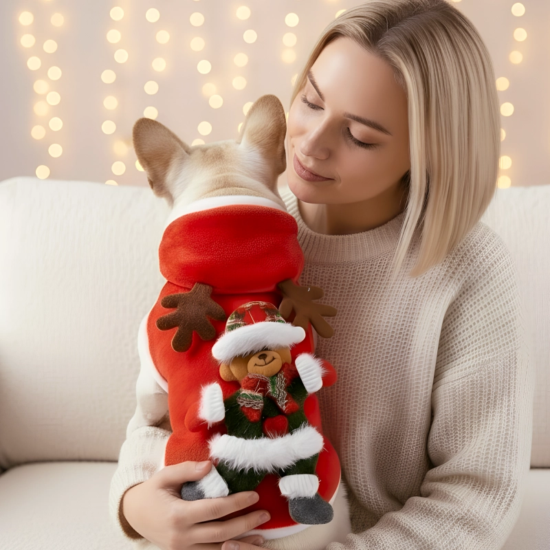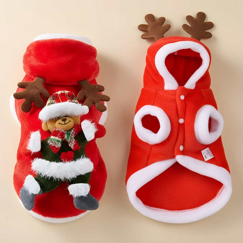 Piristä jokaista juhlahetkeä lemmikkisi iloisella tyylillä. Primdog koiran joulupuku poronsarvilla ilahduttaa joka juhlassa ja nostaa talven tunnelman. Taltioi täydelliset muistot asulla, joka saa kaikki hymyilemään.