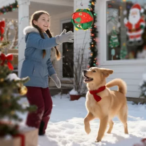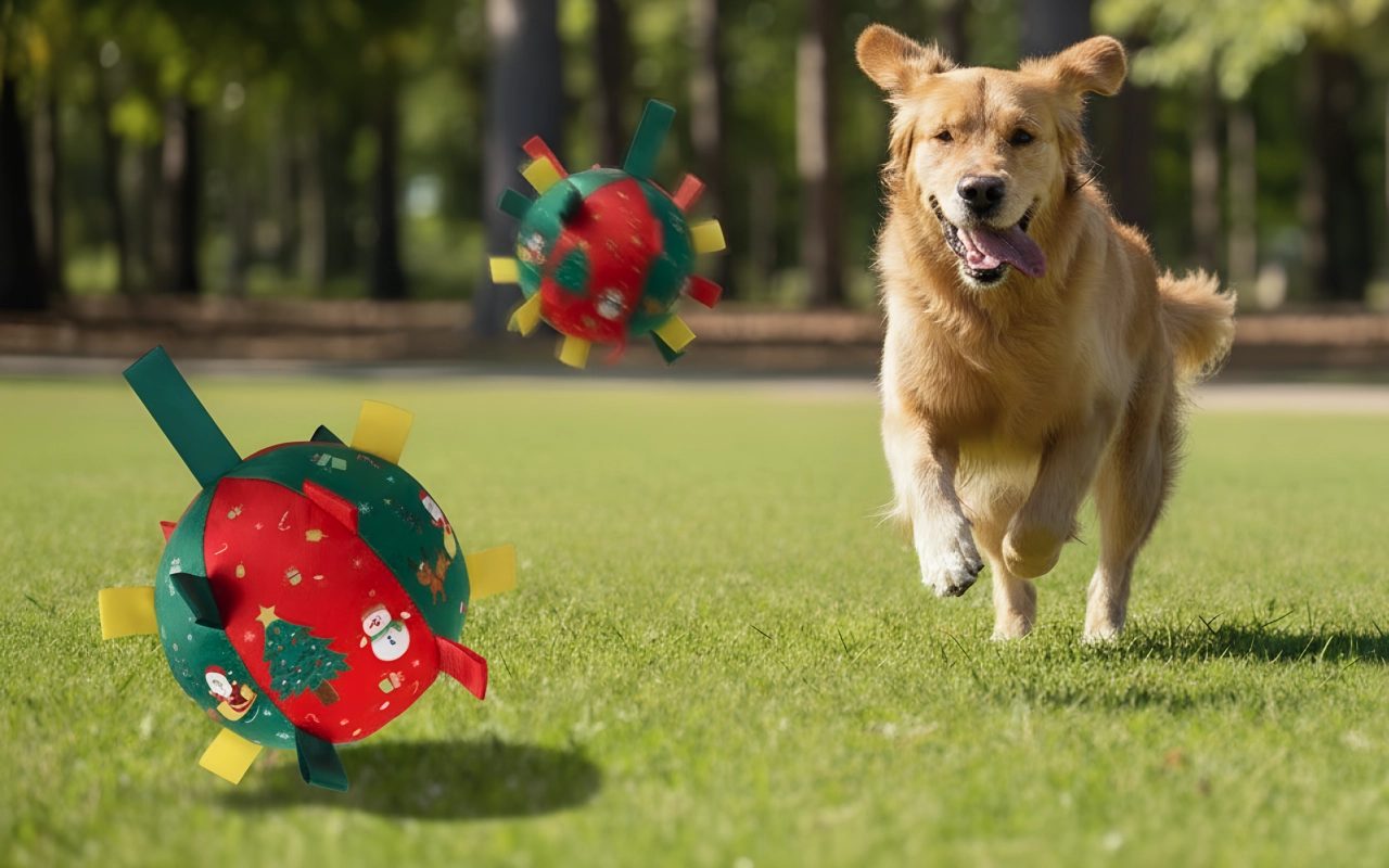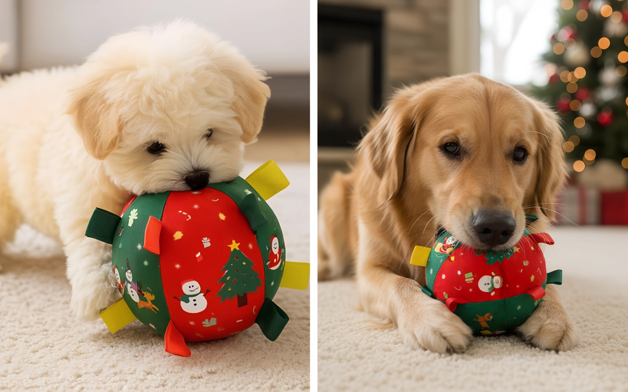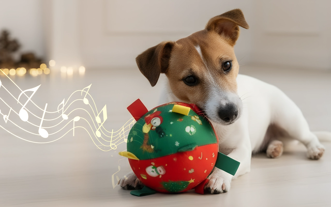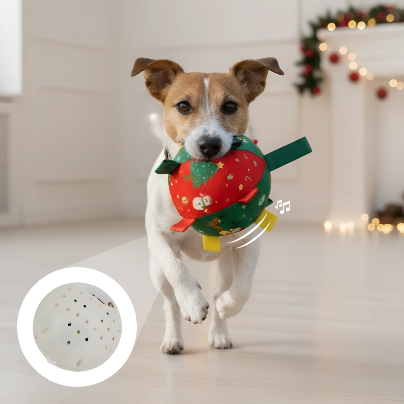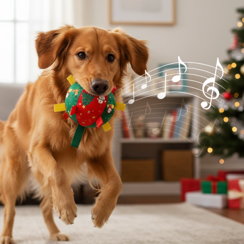 Koiran jouluteemainen interaktiivinen jalkapallolelu kellolla