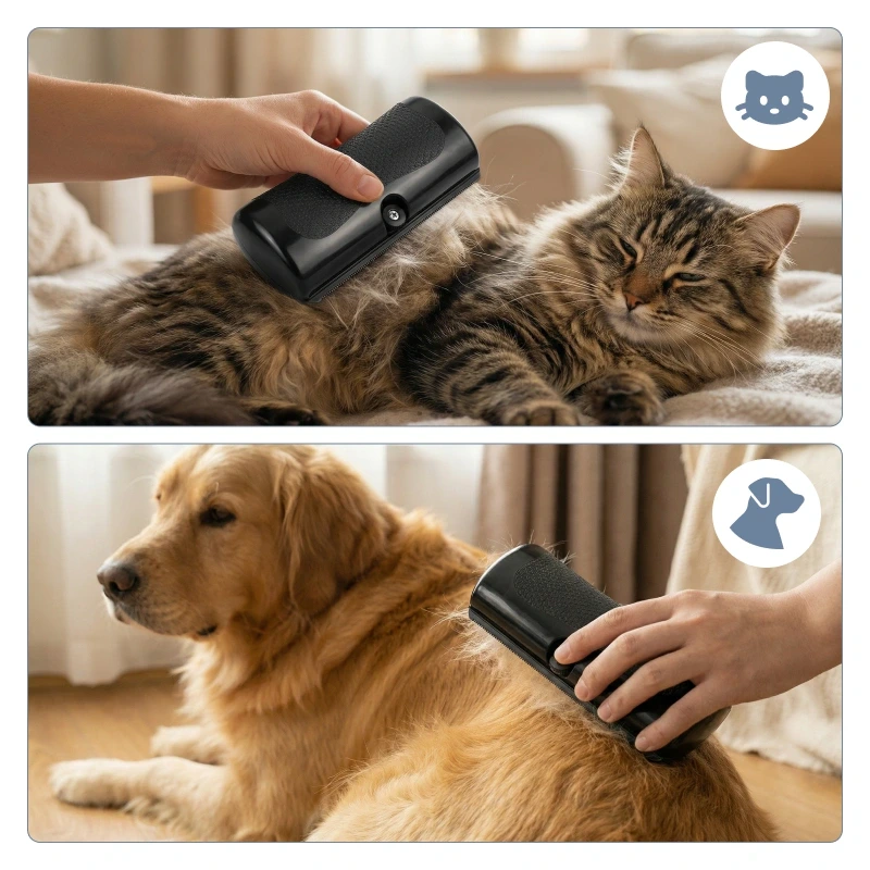 Minulla on kaksi koiraa ja kissa, ja tämä kampa toimii kaikille kolmelle. Rakastan otetta, harjaaminen on nopeaa ja karva menee roskiin eikä jää päälleni.
