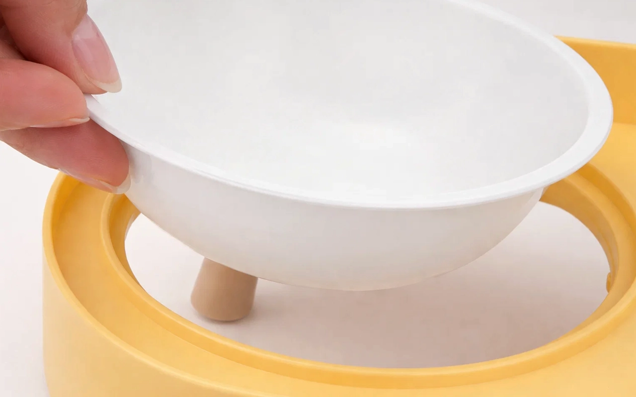 Irrotettavat kulhot nostetaan yhdellä liikkeellä nopeaa pesua varten. Ei enää hankalaa jynssäystä tai kiinni jääneitä ruoantähteitä.