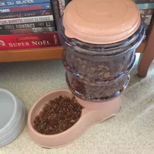 Olen todella tyytyväinen tähän ruokinta-automaatioon. Se on valmistettu tukevasta muovista ja siinä on pienet pidikkeet, jotta se ei liu’u eikä vuoda. Kulho on täydellisen kokoinen!