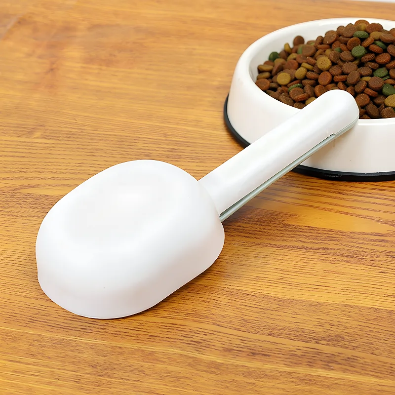 Rakastan käyttää tätä kauhaa joka päivä, koska käteni pysyvät puhtaina ja koiranruoka ei koskaan läiky. Klipsi auttaa todella pitämään ruoan tuoreena pidempään.