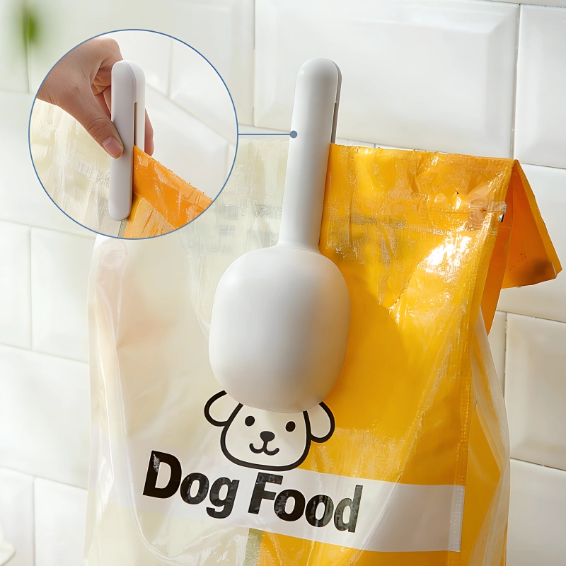 Todella kätevä kauha! Siitä saa hyvän otteen ja tykkään, että voin sulkea pussin ruokinnan jälkeen. Koirani ruoka maistuu hyvältä joka kerta.