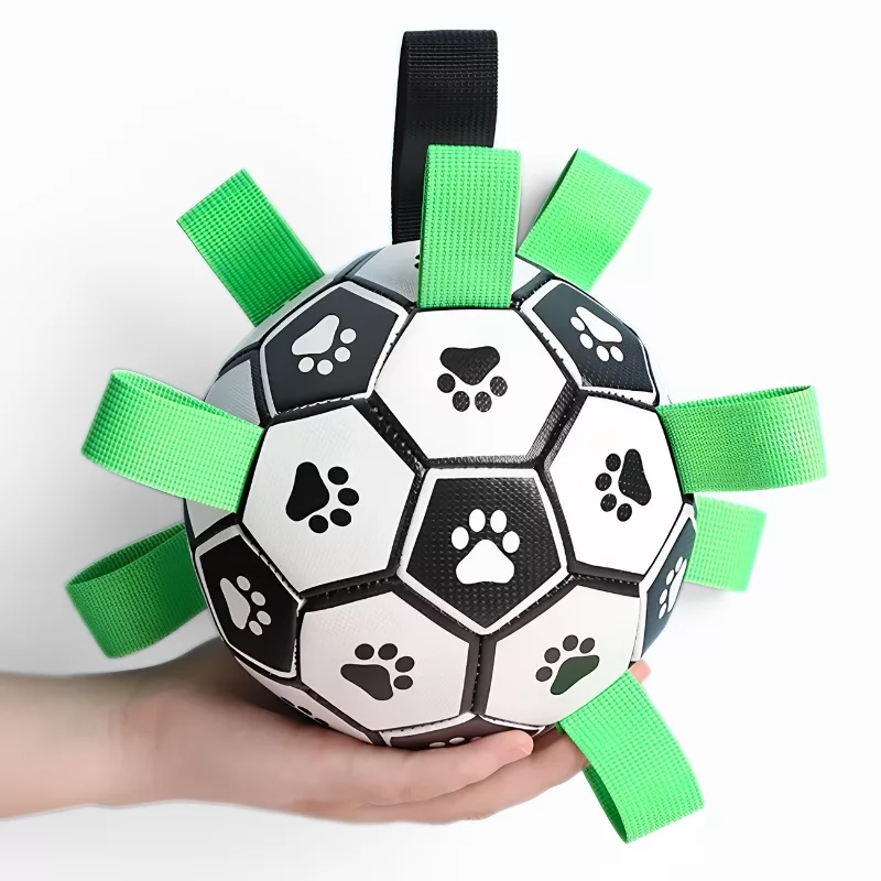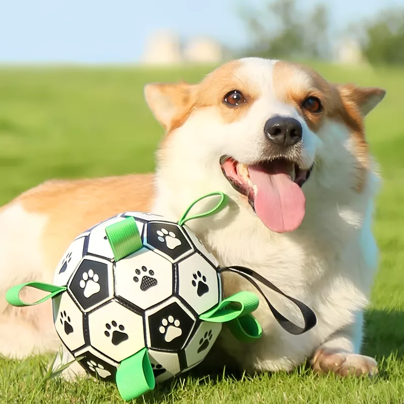 Rakastan sitä, miten tämä jalkapallo auttaa koulutuksessa. Läpyskät tekevät vetoleikki- ja noutoleikeistä helppoja ilman liukumista.