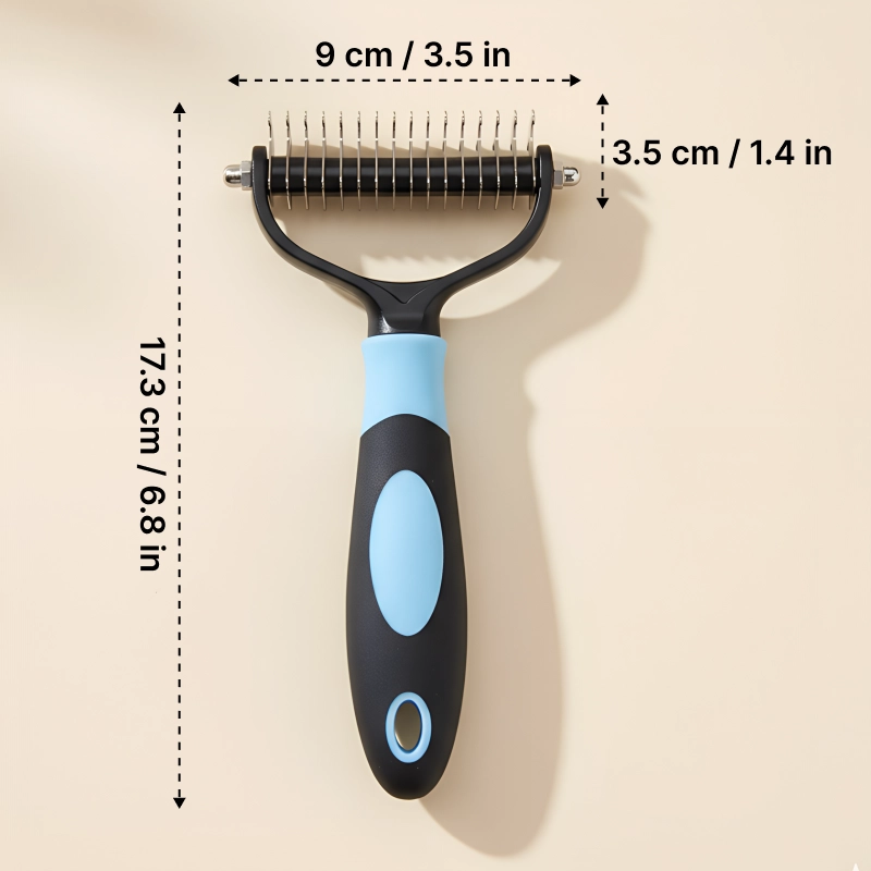 Tykkään siitä, että voin käyttää toista reunaa isoihin takkuisiin kohtiin ja kääntää harjan kevyesti ohentamaan koirani turkkia. Harjaus on paljon vähemmän stressaavaa meille molemmille.