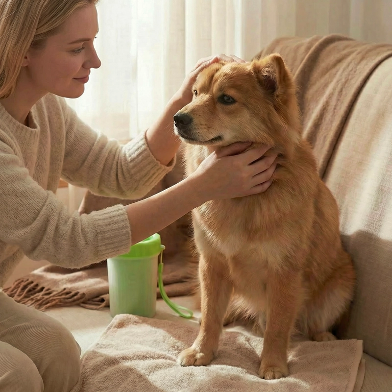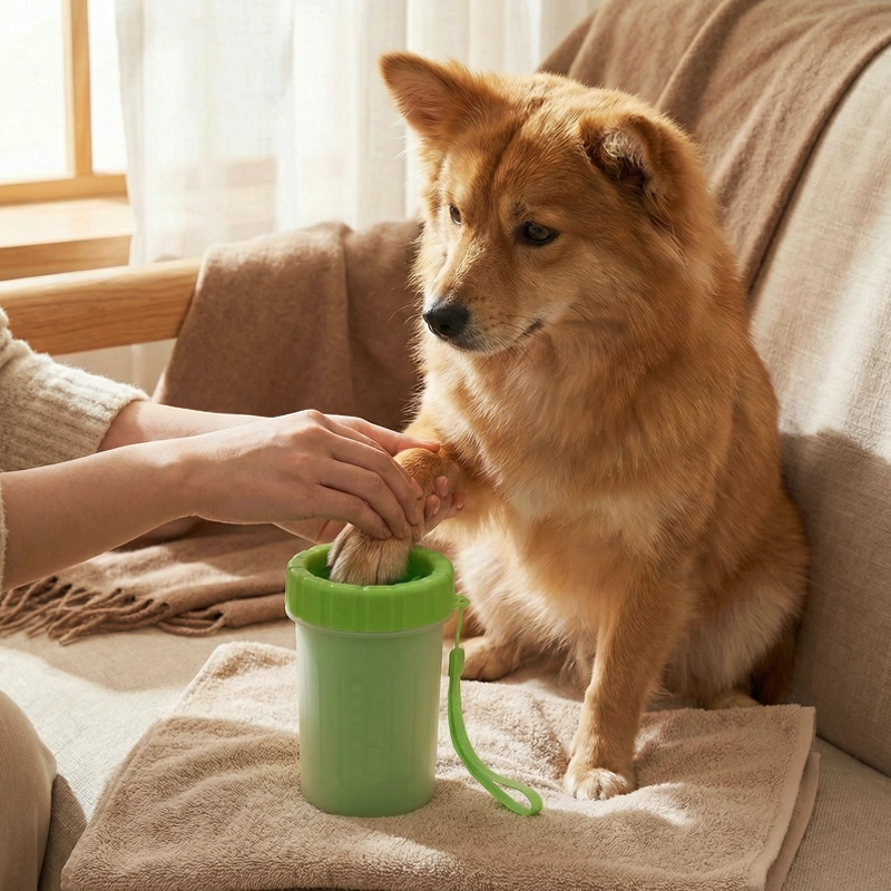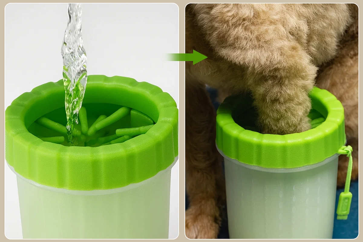 Hämmästyn, kuinka nopeasti tassut puhdistuvat täysin. Kevyt muotoilu tekee käytöstä helppoa leikkien jälkeen puistossa.
