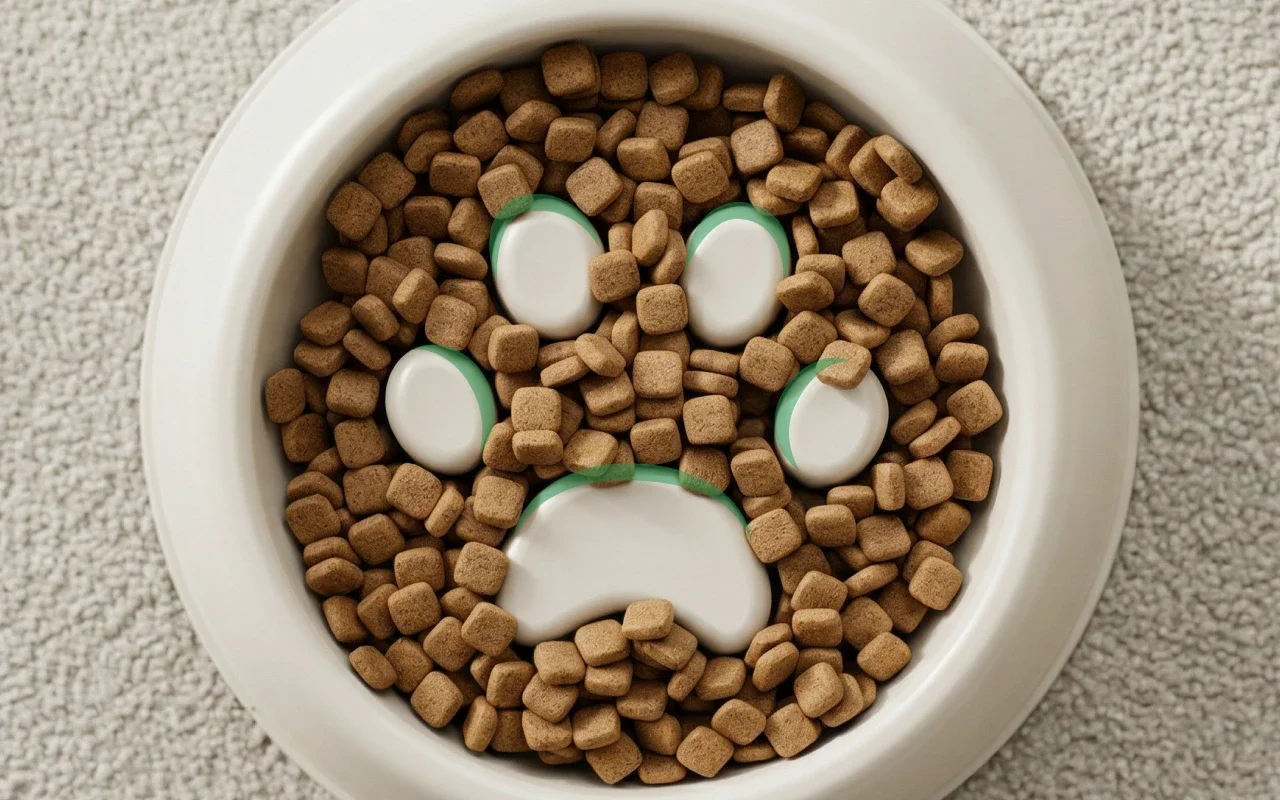 Hitaampi syöminen auttaa ruoan pilkkoutumisessa lemmikkisi vatsassa. Ei enää ilmavaivoja tai epämiellyttävää turvotusta aterioiden jälkeen.