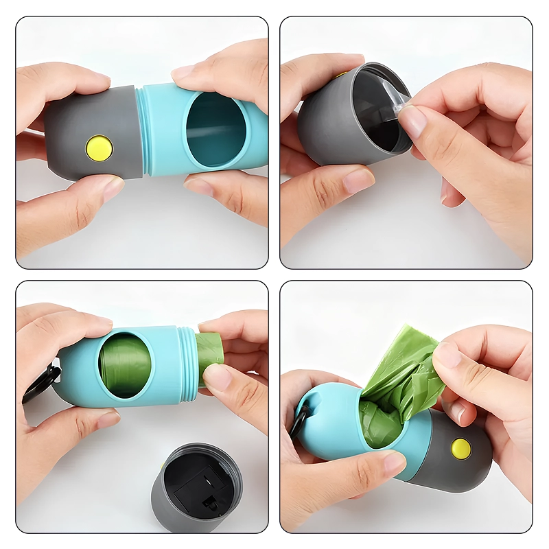 Tekee iltakävelyistä helppoja. Pussit tulevat ulos helposti, ja se sopii suoraan taluttimeeni. Ei enää roskia jälkeeni!