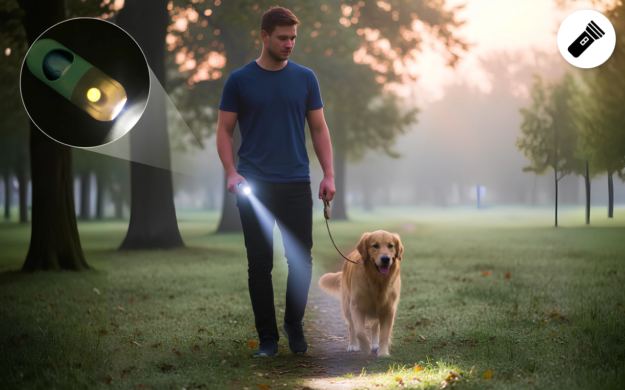 Pidän siitä, että LED mahdollistaa kaiken näkemisen pimeällä jalkakäytävällä. Käteni pysyvät puhtaina, ja pussit eivät koskaan repeä tai vuoda.