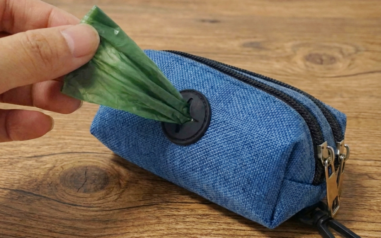 Koiran jätöspussin annostelija karabiinihakasella