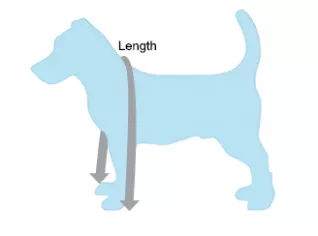 - 4. Jatka mittanauhaa alas toista etujalkaa, päättyen kohtaan, jossa toinen tassu osuu maahan.