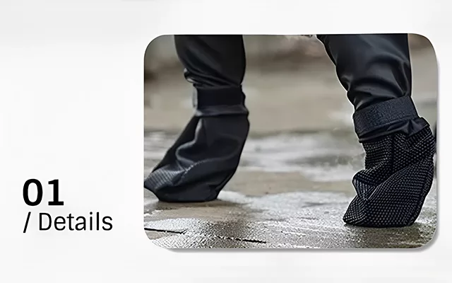 Suojaa tassut sateelta, mudalta ja epätasaiselta maastolta luotettavalla vedenpitävällä suojalla. Kuvioidut pohjat antavat hyvän pidon liukkailla poluilla. Vahvat materiaalit kestävät käyttöä kaikenlaisissa ympäristöissä. Pidä lika ulkona ja vältä kuraisia tassun jälkiä sisällä. Huolellinen suunnittelu takaa helpon liikkumisen ja käyttömukavuuden koko päiväksi.