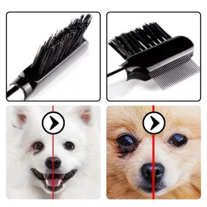Tämä työkalu suorittaa kaksi tehtävää: selvittää lemmikkisi turkin silmien ympäriltä ja poistaa kyynelvärjäymät.