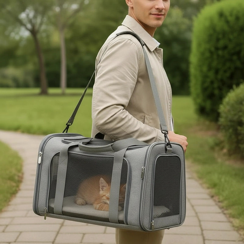 Pidä kumppanisi lähellä jokaisella matkalla. Mukavuuden vuoksi suunniteltu kantolaukku varmistaa, että lemmikki pysyy rauhallisena matkoilla. Vahvat verkkosivut mahdollistavat karvaisen ystävän tarkistamisen milloin tahansa. Ole huoleton, kun lemmikkisi nauttii pehmeästä ja kotoisasta tilasta.