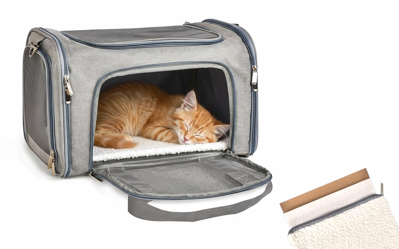 Irrotettava fleece-tyyny luo lempeän pedin rauhallisia nokosia varten. Verkkomateriaalit päästävät raikkaan ilman sisään, auttaen lemmikkiä rentoutumaan matkan aikana.