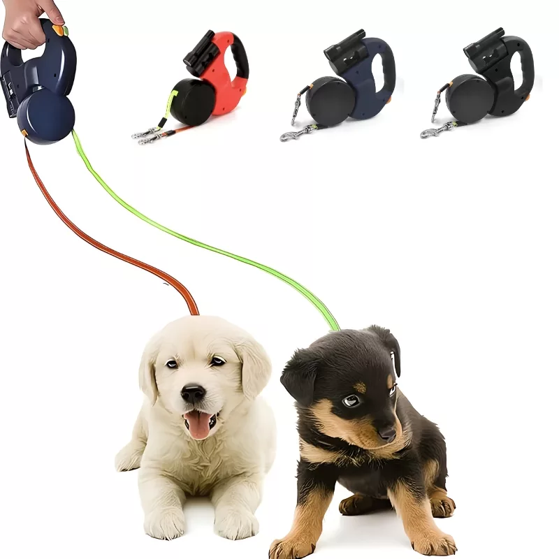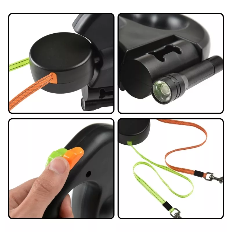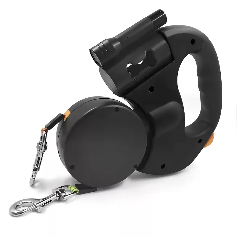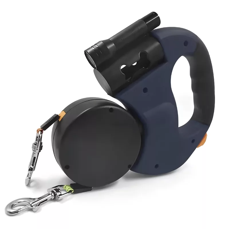 retractable dog leash, leash for 2 dogs, dual dog leash, double dog leash, leash with flashlight