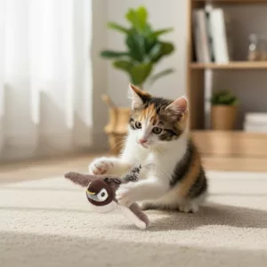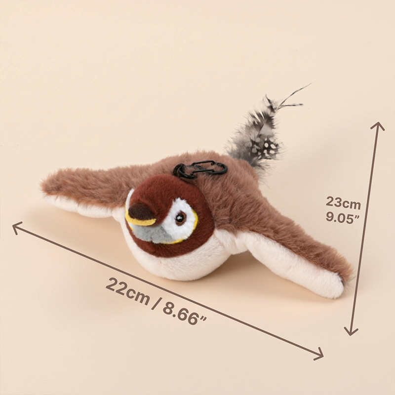 Primdog Dancing Sparrow innostaa karvaiset ystävät joka päivä. Kolme fiksua liikkumistilaa tarjoavat loputtomasti leikkisää hetkiä kissoille. Pehmeät materiaalit ja aidot äänet auttavat lievittämään tylsyyttä ja stressiä nopeasti. Lataaminen on helppoa, joten leikkihetki ei koskaan keskeydy pitkäksi aikaa.
