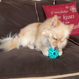 Koirani ei ole tuhonnut tätä palloa, vaikka se on leikkinut sillä 3 kuukautta! Riittävän kevyt leikkiä sisällä ja sen hengitys on parantunut merkittävästi. Erinomainen tuote