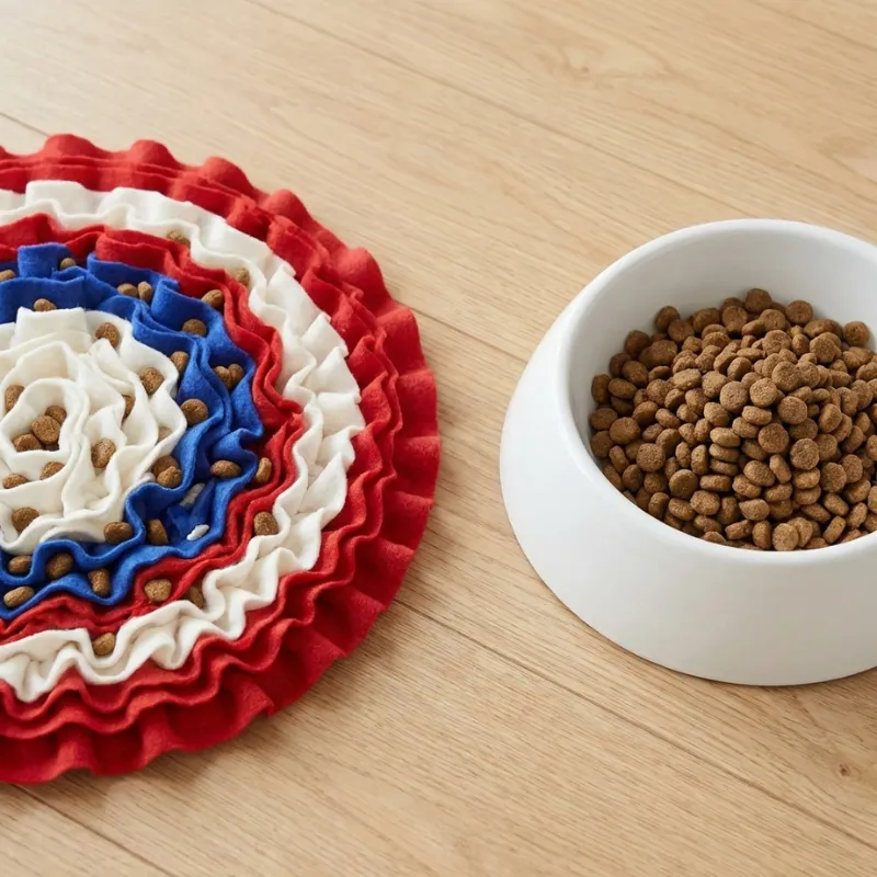 Primdog-nuuskumatto tekee ruokailusta hauskan aarteenetsinnän. Piilota nappulat taitosten väliin ja katso, kuinka keskittyminen kasvaa. Hidas etsiminen ehkäisee hotkimista ja röyhtäilyä. Rauhallinen leikki helpottaa levotonta energiaa pitkien päivien aikana.