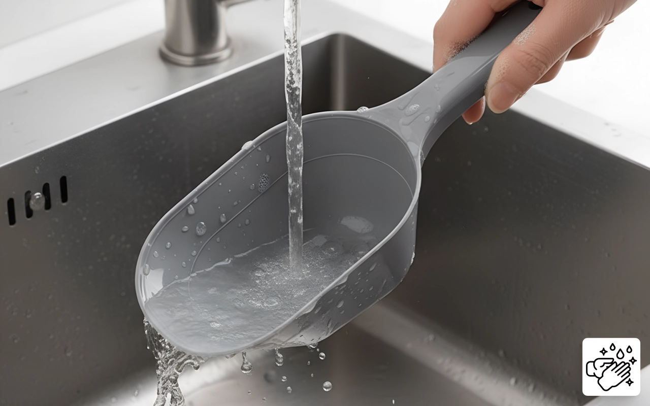 Sileä materiaali puhdistuu sekunneissa vain vedellä. Jäämiä ei jää, joten jokainen kauhallinen pysyy tuoreena.