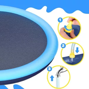 Labradorini rakastaa vesipatjaa! Hän juoksee vesiruiskujen läpi ja haukkuu ilosta. Kokoaminen oli todella nopeaa ja se on täydellinen kuumiin iltapäiviin.