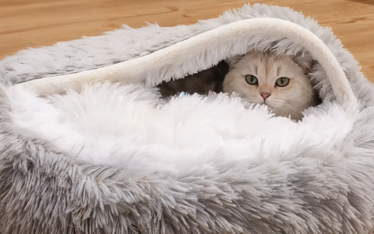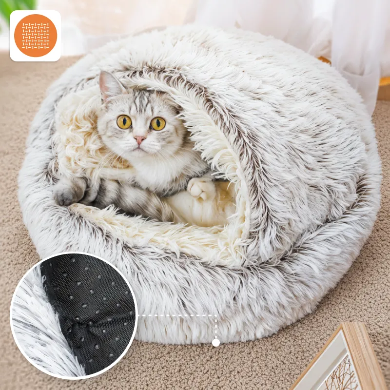 Pehmeä kissan pyöreä suljettu peti lämmin lemmikkipesä