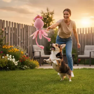 Koirat rakastavat haastetta, joka pitää ne kiireisinä. Primdog Plush Octopus tuo jännitystä äänen ja liikkeen kautta. Sen pehmeä fleece tuntuu hellävaraiselta ja kestää pitkät leikkihetket. Anna lemmikillesi ystävä, joka auttaa pysymään terveenä ja aktiivisena sisällä tai ulkona.