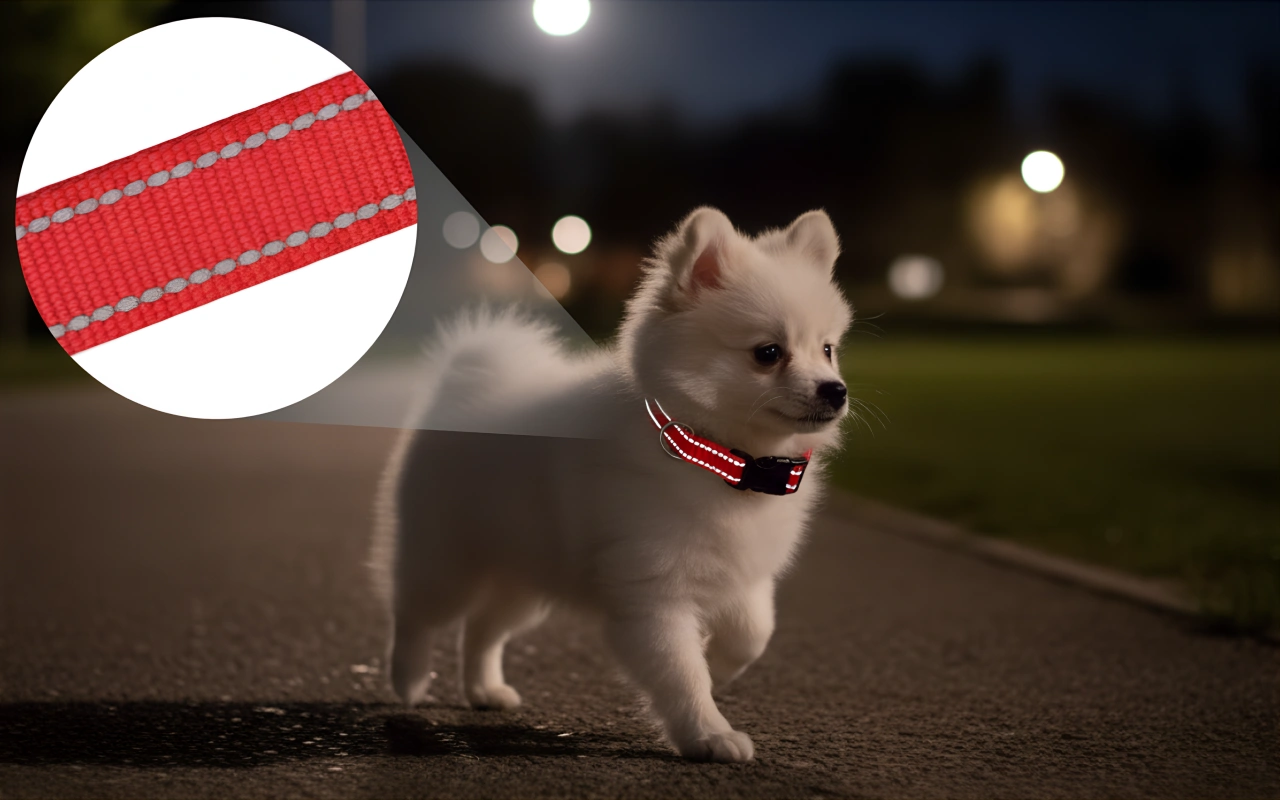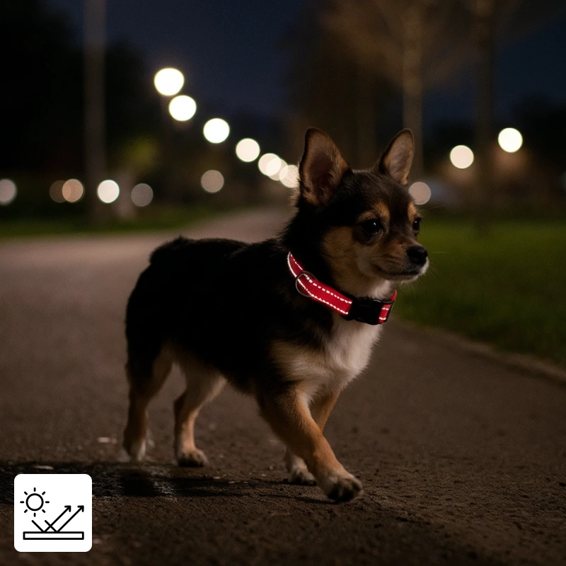 Heijastava ommel loistaa kirkkaasti jopa hämärässä. Lemmikkisi näkyy kuljettajille ja pyöräilijöille pimeän jälkeen.