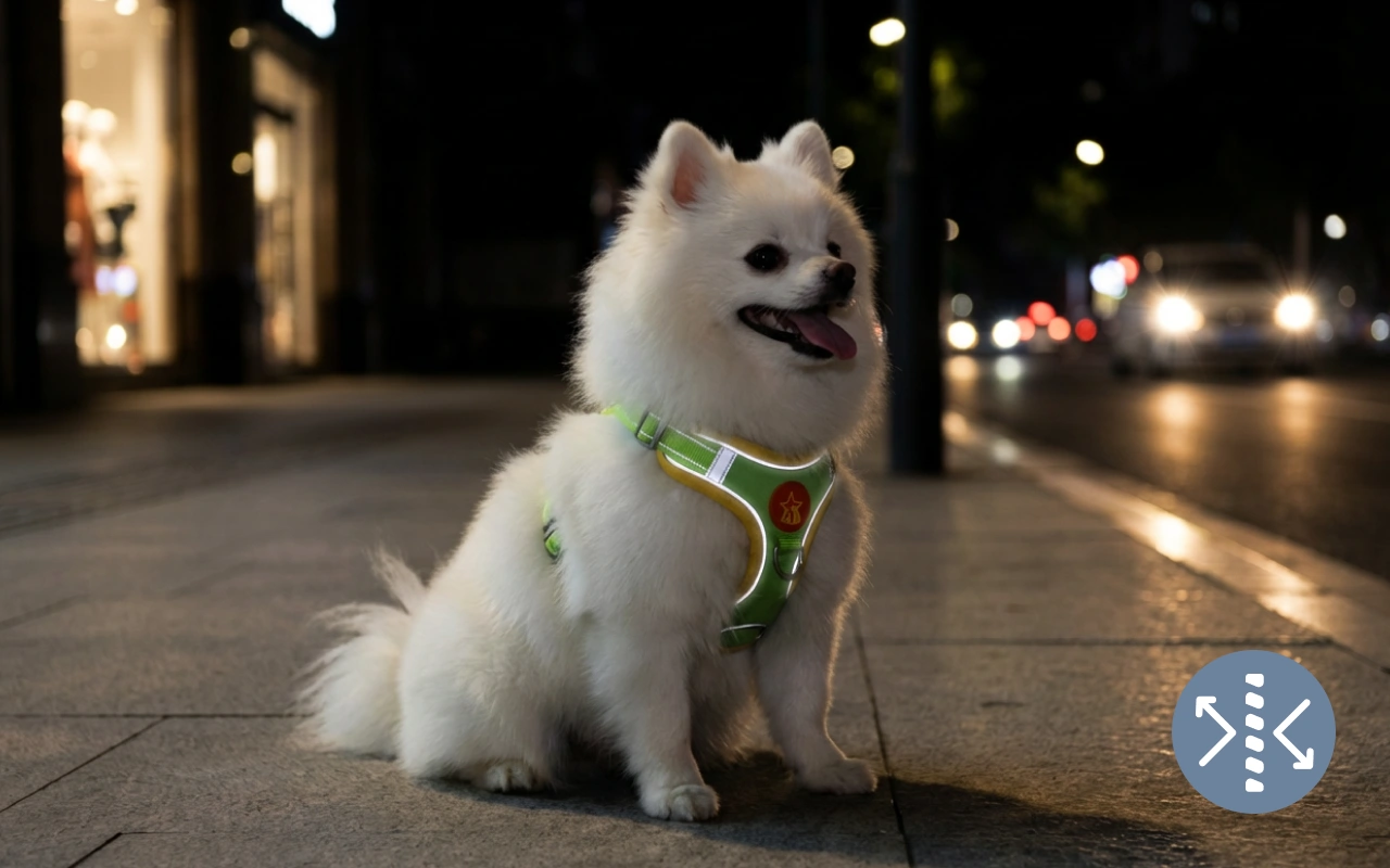 Heijastavat tikkaukset auttavat pentuasi näkymään auringonlaskun jälkeen. Valo heijastuu reunasta, joten autoilijat huomaavat ystäväsi aina.