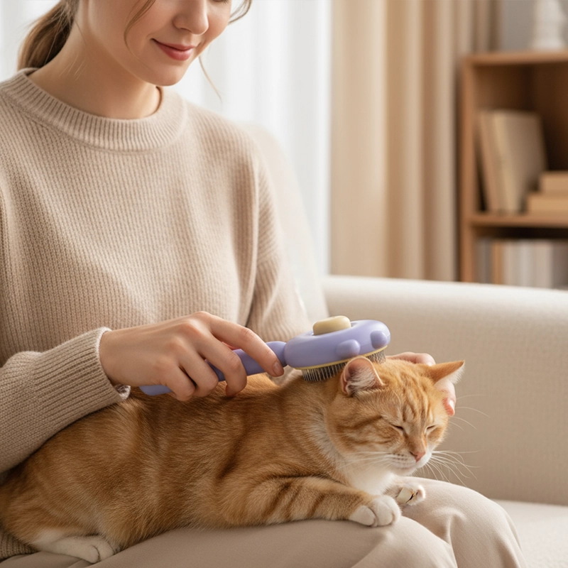 Itsepuhdistuva kissan harja turkin selvitykseen karvanpoistokampa