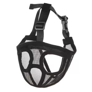 Kevyen materiaalin ansiosta kuonokoppa ei rasita lemmikin niskaa. Verkkorakenteen ansiosta koira voi hengittää, juoda vettä ja läähättää vapaasti.