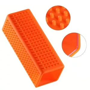 Pidän tämän silikoniharjan yksinkertaisuudesta. Se toimii hyvin ja on hellävarainen käsille. Ainoa haittapuoli on kahvan puuttuminen. Hoitaa kuitenkin tehtävänsä.