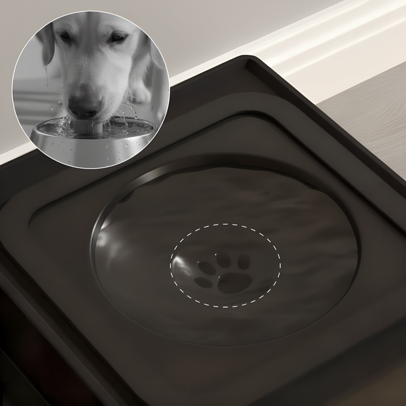 Korotetut reunat estävät vettä tai nappuloita leviämästä lattialle. Nauti siististä ja kuivasta ruokailualueesta, joka pysyy puhtaana pidempään.