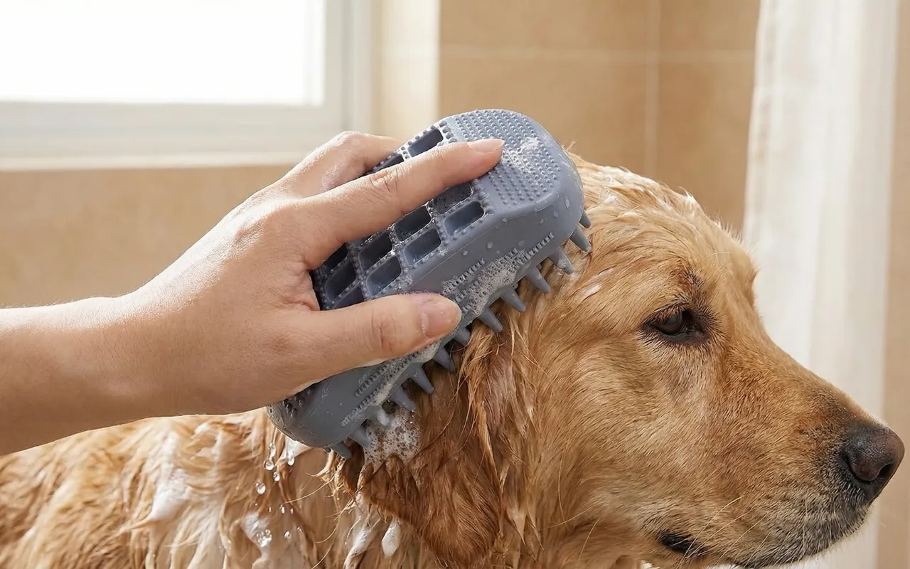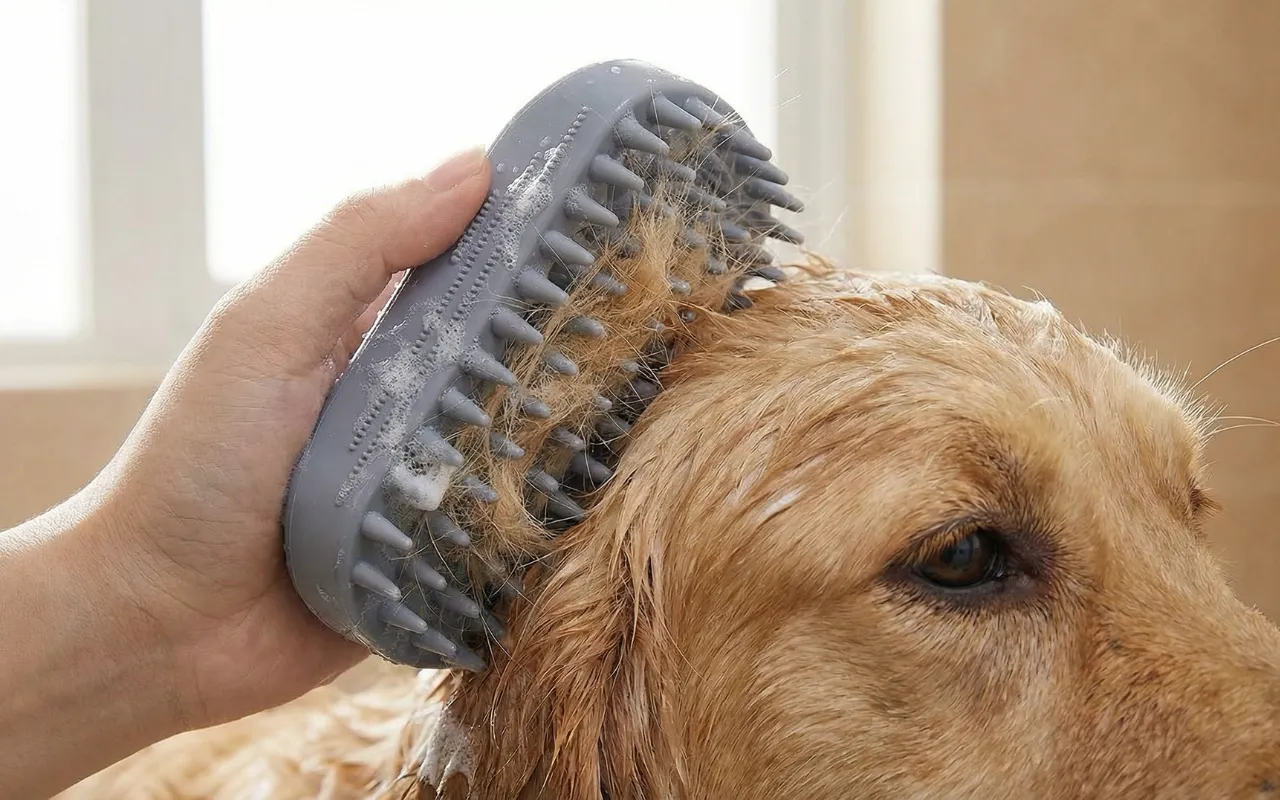 Pehmeä koiran suihkuharja ja lemmikin kylpyharja
