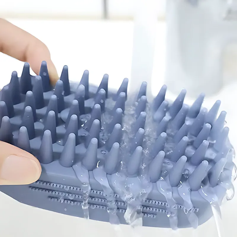 Kahden koirani siistiminen käy nyt nopeammin. Silikoni tuntuu hellävaraiselta niiden ryppyistä ihoa vasten, mutta silti kuuraa lian pois. Harjan puhdistaminen käytön jälkeen on todella helppoa.