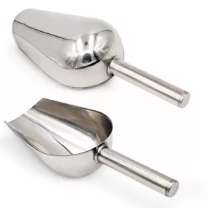 Kiiltävä kauha auttaa mittaamaan ruoan nopeasti. Rakastan kahvan tuntumaa – ei enää kipeitä käsiä kolmen koiran ruokinnan jälkeen.