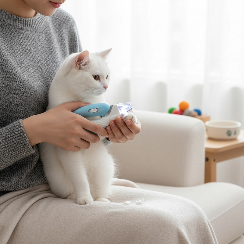 Sisäänrakennettu valo tekee ison eron. Näen tarkalleen mitä teen. Kissa ei enää lainkaan vastustele!